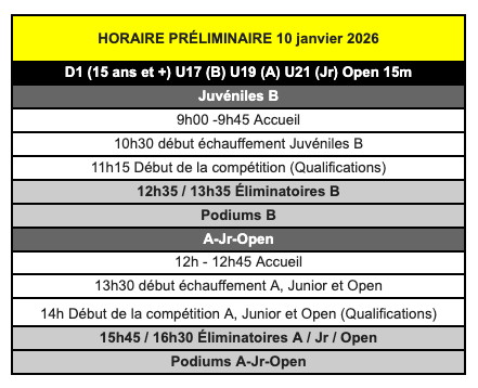 Catégories : D1 (Sr-Jr-A-B) ET D3 (Toutes les catégories)