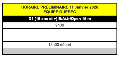 DIVISION 1 (15M) le 10 janvier et Initiation DIVISION 3 le 11 janvier + Camp d’entraînement Équipe Québec (à confirmer)