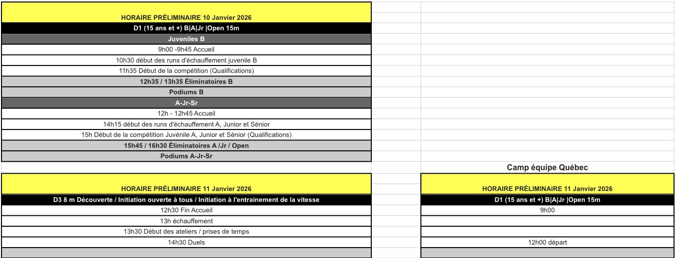 DIVISION 1 (15M) le 10 janvier et Initiation DIVISION 3 le 11 janvier + Camp d’entraînement Équipe Québec (à confirmer)