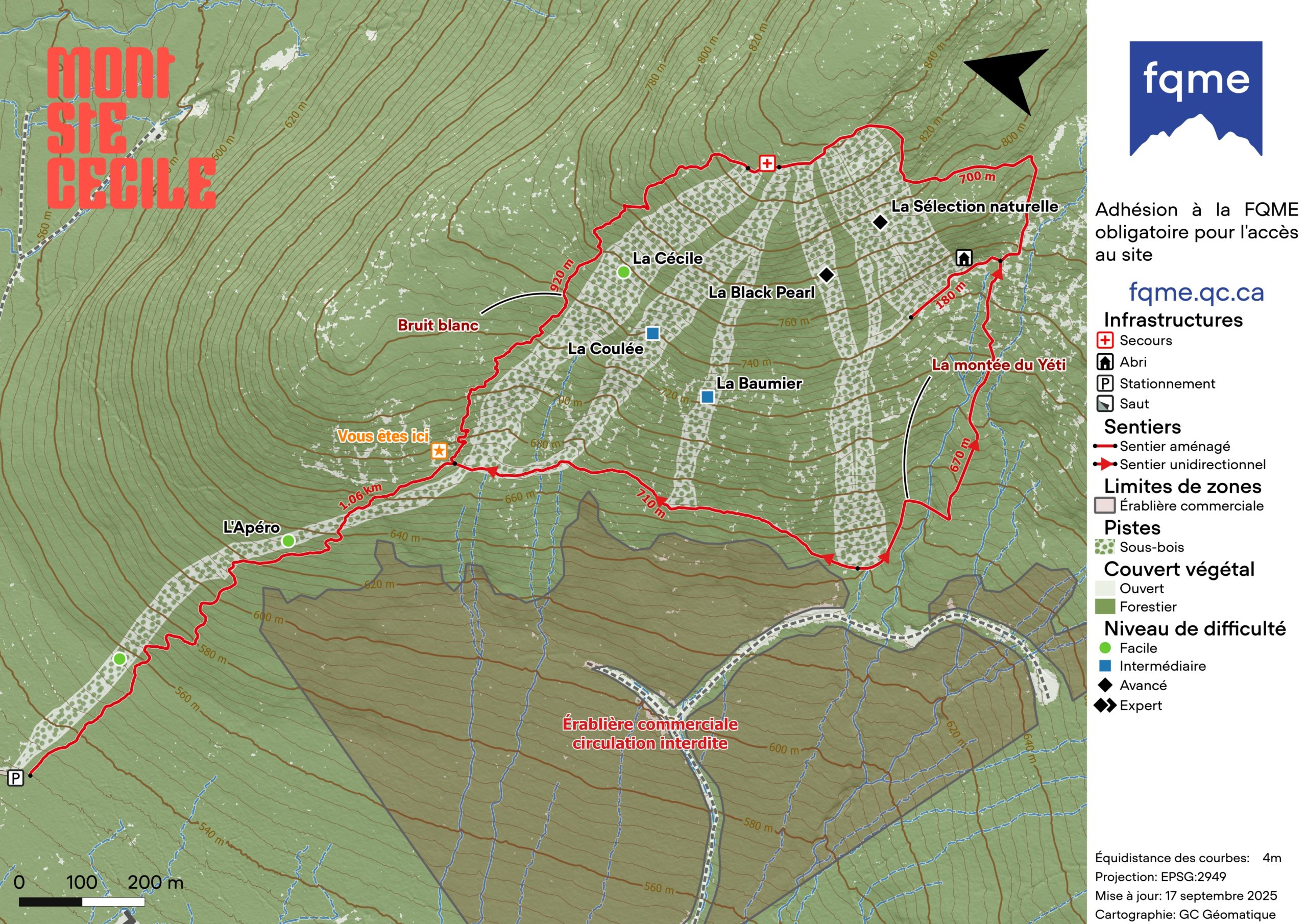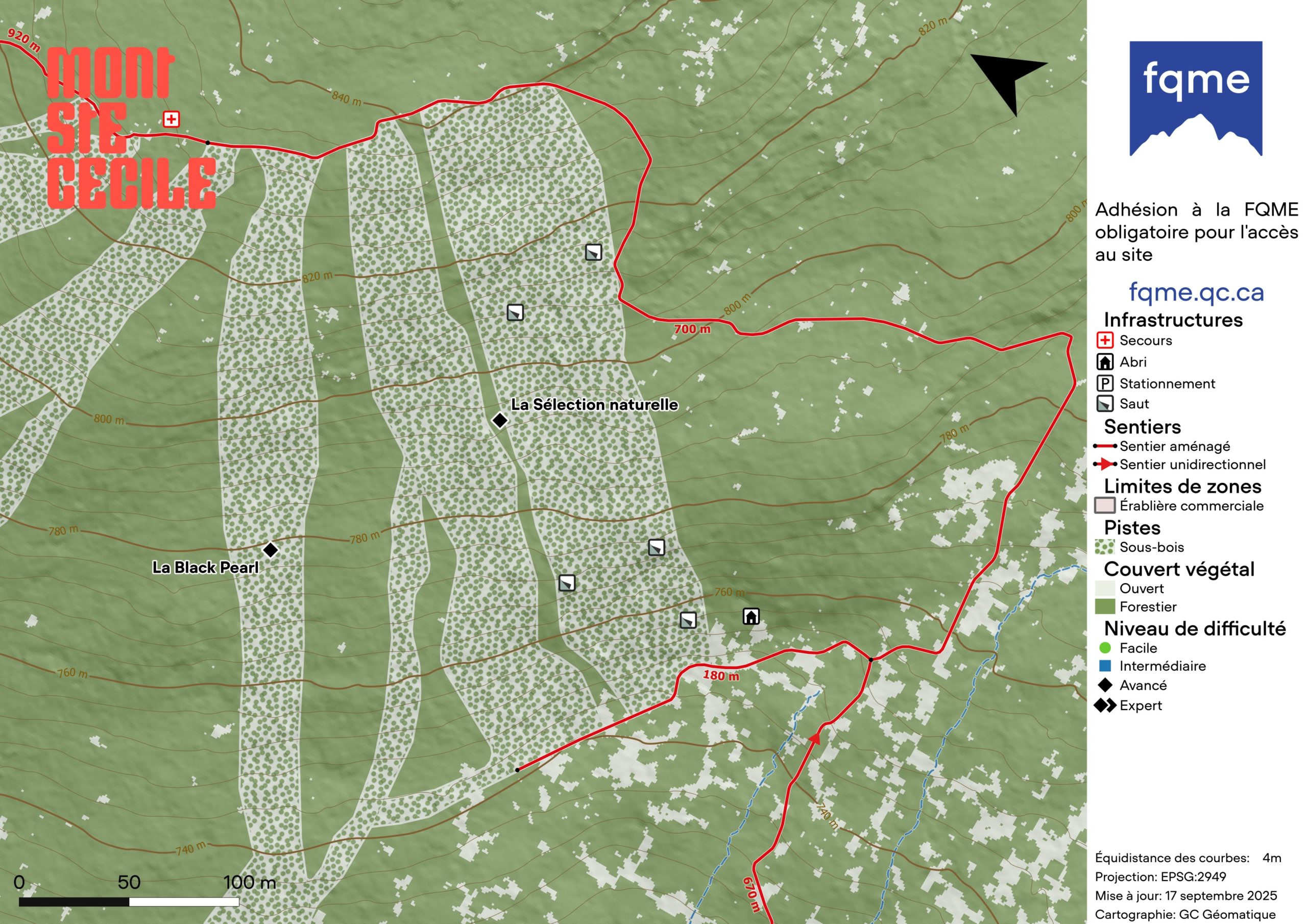 Le Mont Ste-Cécile fait parti de la chaîne de montagne des Appalaches, dans la région de Mégantic. Avec une altitude de 895m et un dénivelé de 420m (2e plus haut dénivelé de la région), le Mont Ste-Cécile est l’endroit par excellence pour s’évader en nature avec un terrain de jeu de plus de 580 acres. Ce site, ouvert pour la deuxième saison, a un dénivelé de 302m avec 5 sous bois aménagés en mêlant modules naturels et plateformes de saut, un terrain joueur qui permet à tous de s’amuser et de progresser ! Venez y voir un paysage exceptionnel en montagne en plein cœur de cette magnifique région touristique!