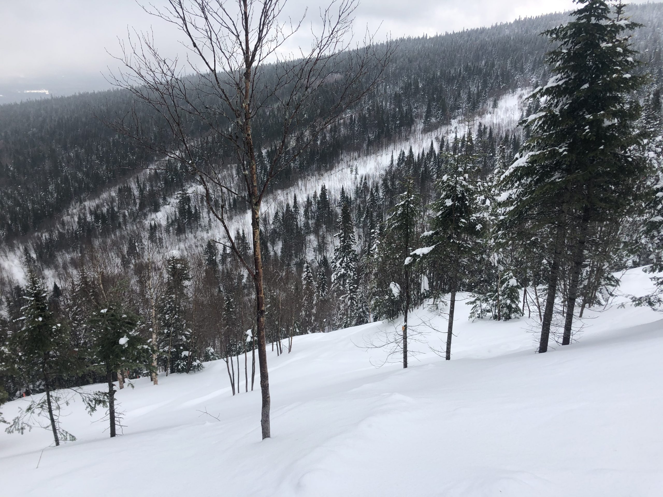 Le secteur de la Grande Coulée était autrefois un centre de ski alpin. Vingt ans après sa fermeture, voila enfin le renouveau de cette magnifique station. Grâce aux équipes Le Backyard et le Parc des Appalaches, 7 sous-bois de difficultés allant de facile à avancé sauront rendre heureux tous les pratiquants. Un refuge journalier, qui saura vous réchauffer, se trouve à mi-montagne, au pied du secteur de la collation. Ce paradis de poudreuse et de bouleaux prend parfois des airs de petit Japon.